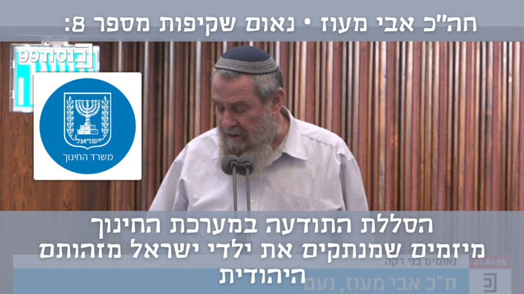 יו”ר מפלגת נעם, ח״כ אבי מעוז בנאום במליאת הכנסת בעקבות תחקיר מגזין 14 על ה״מיזמים המשותפים״ במשרד החינוך.