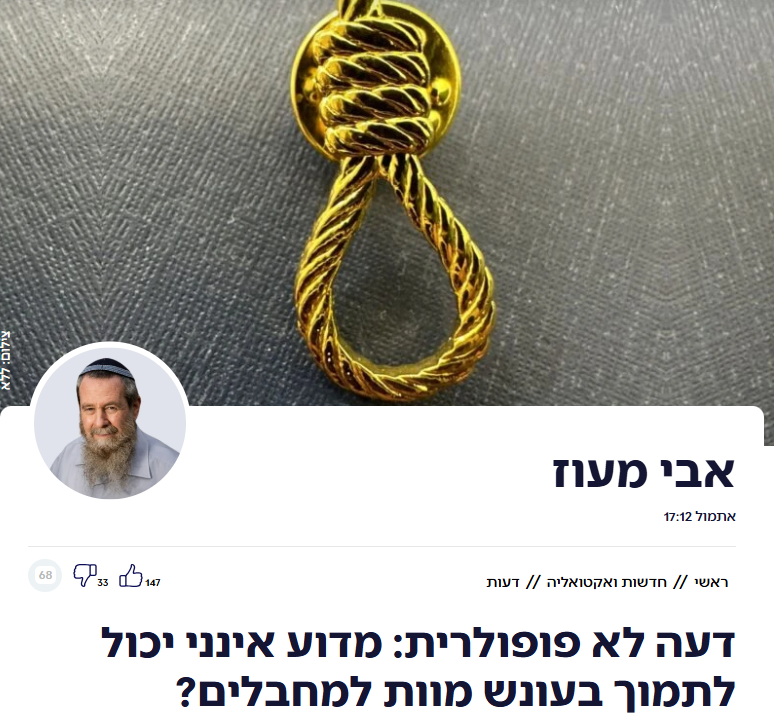 דל״פ: מדוע אינני יכול לתמוך בחוק עונש מוות למחבלים?