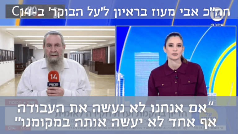 על עתיד רצועת עזה, המלחמה, חוק הגיוס, שירות חרדים ונשים בצה״ל, והמאבק על זהותה היהודית של מדינת ישראל.